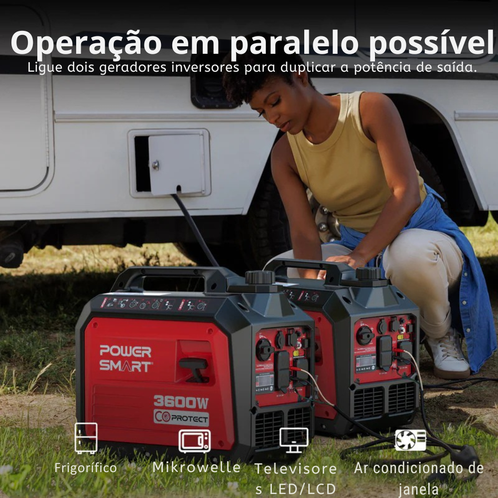 - Potência: 3600 W (arranque) / 3200 W (contínua)