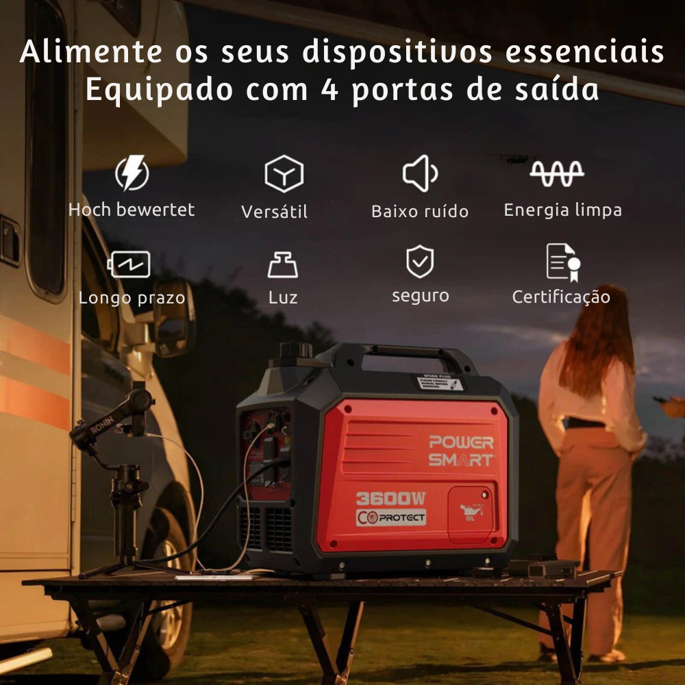Gerador a Gasolina Inverter 3600W – Leve, Silencioso e Conforme as Normas em Vigor